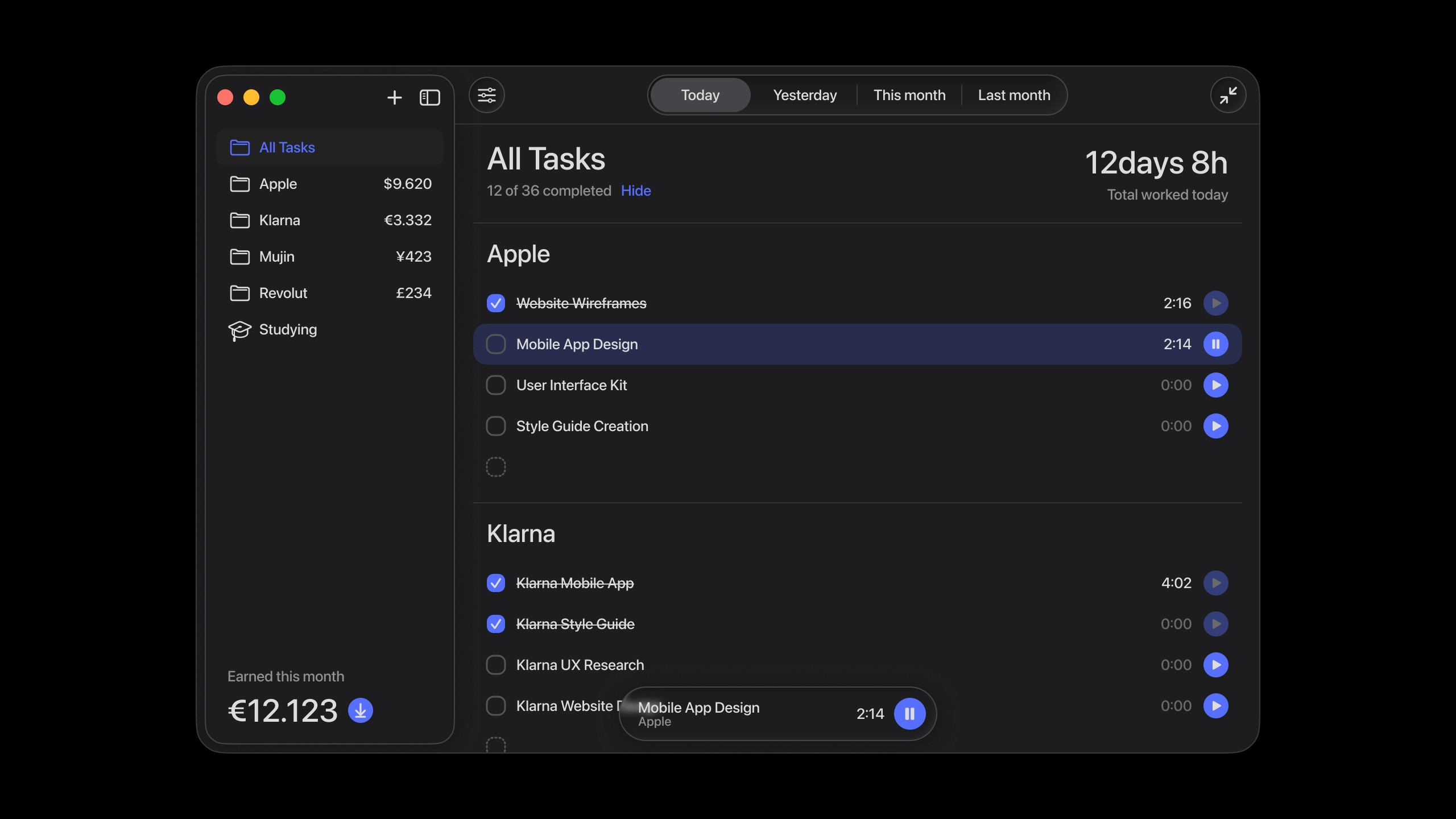 DailyGrind is a minimalist macOS time-tracking app I designed and developed to solve my own workflow frustrations. I focused on core actions like adding clients, tracking time, and exporting invoices. Launched solo, it reached #3 on Product Hunt and was praised for its clean and frictionless UX.